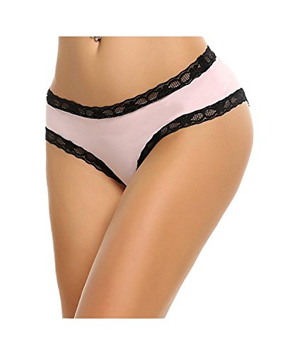 KissLace Women Sexy Lingerie Panties Lace Knickers Briefs Underwear Open Back With Satin Bow Pink M