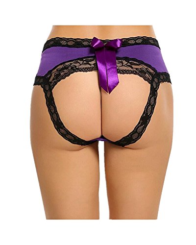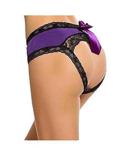 KissLace Women Sexy Lingerie Panties Lace Knickers Briefs Underwear Open Back With Satin Bow Purple M