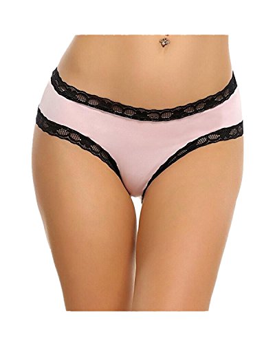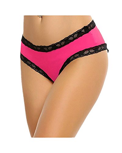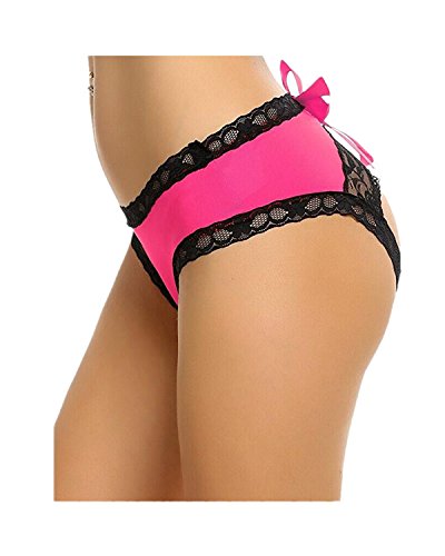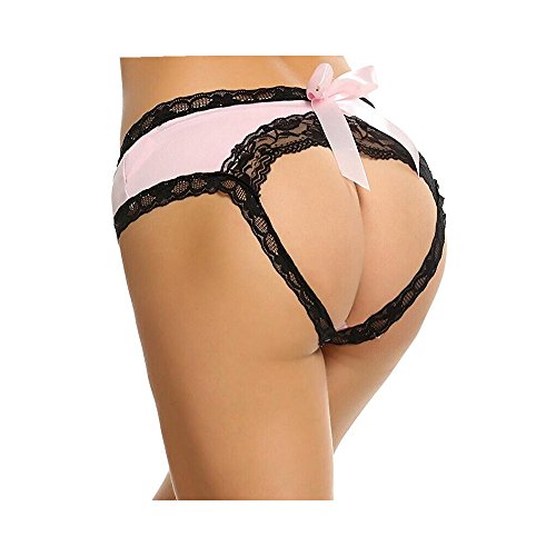 KissLace Women Sexy Lingerie Panties Lace Knickers Briefs Underwear Open Back With Satin Bow Pink L