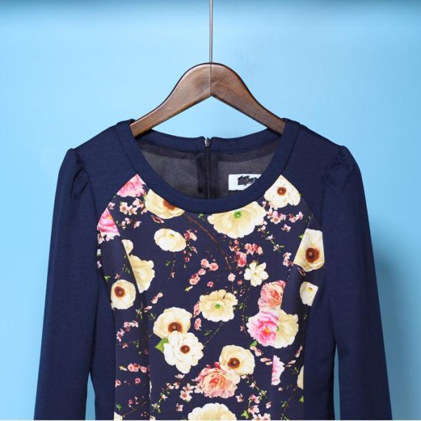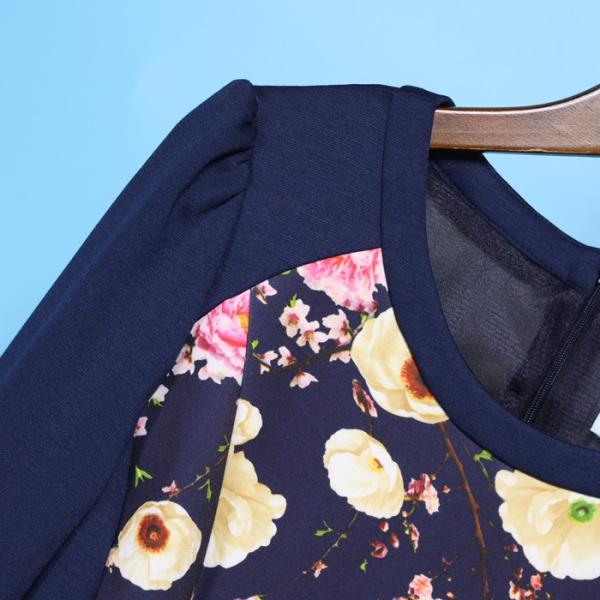 肩からウエストのラインに向けて2色の生地を使用することによってスリム魅せ