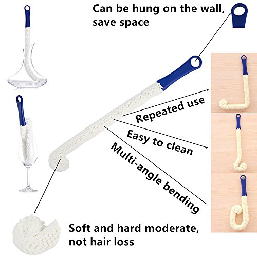 -. Feature : UNIQUE DESIGN--Convenient ,Flexible, Soft, Lightweight design,Sturdy and Durable.Long enough to clean the dust, dirt on the bottom of the glass. / HIGH QUALITY--Made of high quality foam,Reinforced foam bristles will not chip or break valuable crystals or glassware. / REUSABLE--- These are totally reusable, so hand wash or in the dishwasher to use over and over again.cleaning up is simple because everything will slip off right off. / EFFICIENT-- Long neck for easy reach inside bottles.Wash it in seconds,saving time and effort / MULTIPURPOSE--Multi-function Household Cleaning Tools Flexible Bottle Scourer Cleaning Brush.Perfect for narrow neck goblets, wine decanters, water bottles, Glasses, Cups,stemware,pitchers and carafes