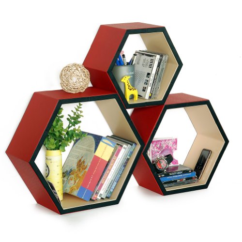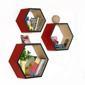 - Title : Trista - [Romantic Charm] Hexagon Leather Wall Shelf / Bookshelf / Floating Shelf (Set of 3)