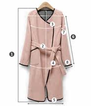 | 尺码 | ①前衣长 | ②后中长 | ③胸围 | ④臀围 | ⑤下摆围 | ⑥袖长 | ⑦袖臂围 | ⑧袖口围 | ||