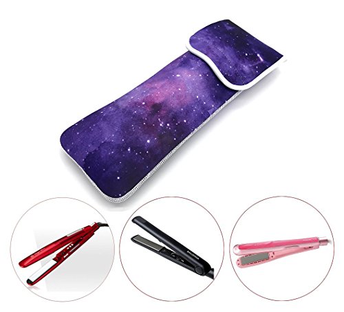 Wanty Water-Resistant Neoprene Curling Iron Holder Flat Iron Curling Wand Travel Cover Case Bag - Flat Iron Travel Pouch - Hair Straighteners Case with Velcro (Purple sky)