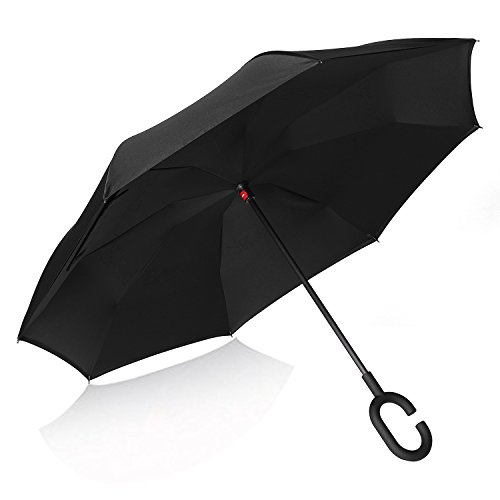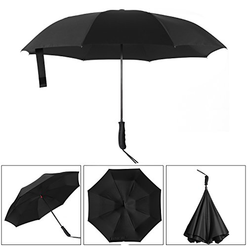 Bagail Double Layer Inverted Umbrellas Reverse Folding Umbrella Windproof UV Protection Big Straight Umbrella for Car Rain Outdoor With C-Shaped Handle Black