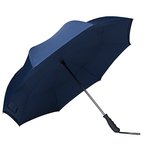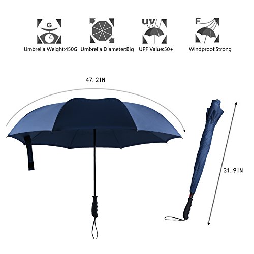 Bagail Double Layer Inverted Umbrellas Reverse Folding Umbrella Windproof UV Protection Big Straight Umbrella for Car Rain Outdoor With Straight Handle (Navy)