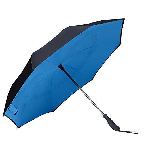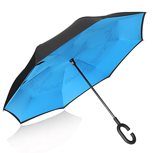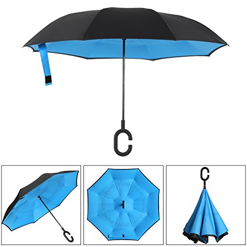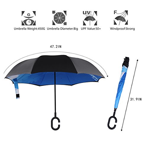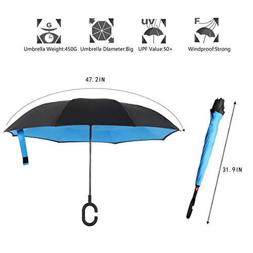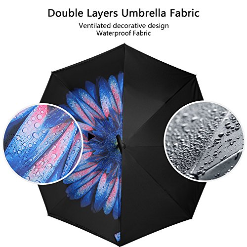 BAGAIL Double Layer Inverted Reverse Folding Windproof UV Protection Big Straight Umbrella for Car Rain Outdoor with C-Shaped Handle, Blue