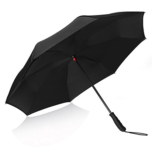 Bagail Double Layer Inverted Umbrellas Reverse Folding Umbrella Windproof UV Protection Big Straight Umbrella for Car Rain Outdoor With Straight Handle Black