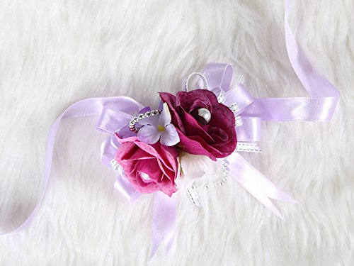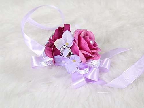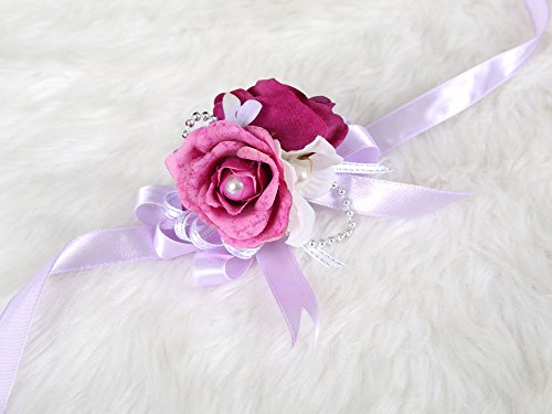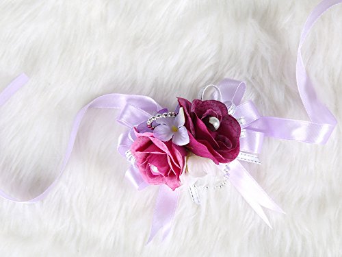 Lovely bridesmaid wrist flower corsage rose prom night party (Purple)