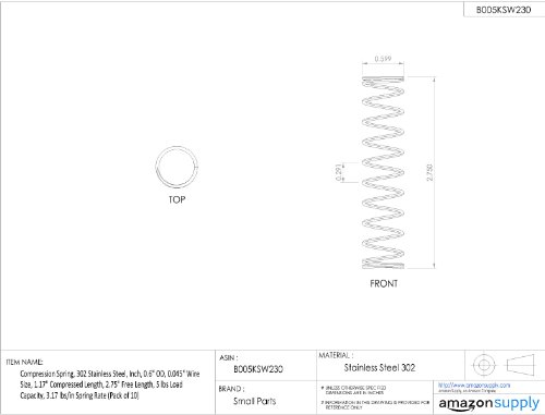 Compression Spring, 302 Stainless Steel, Inch, 0.6" OD, 0.045" Wire Size, 0.257" Compressed Length, 0.5" Free Length, 5 lbs Load Capacity, 20.58 lbs/in Spring Rate (Pack of 10)