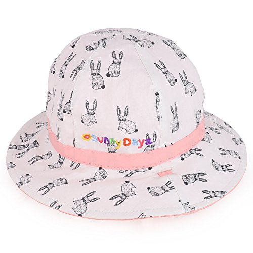 Binding : Apparel Product Description Our Trendy Apparel Shop Infant Baby Girl's Reversible Bunny Rabbits Toss UPF Sun Floppy Hat is an adorable infant hat for your baby girls. This infant size cotton bucket hat is designed with cute rabbit prints. Reversible bucket hat. Made of 100% Cotton. UPF material of hat protects your infants from harmful UV sun rays. Flexible, packable and crushable hat. Brim measures 1.75 ~ 2 inche wide. Fitted with an adjustable chin strap, chin strap is removable. 2 infant sizes are available; 44CM(0-12 months) and 48CM(12-24 months) 0