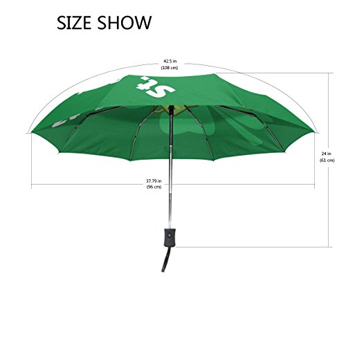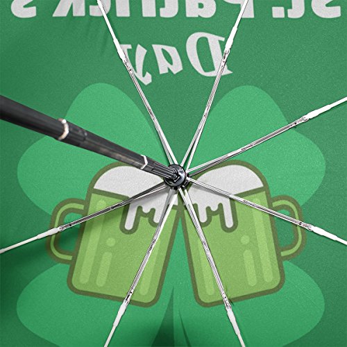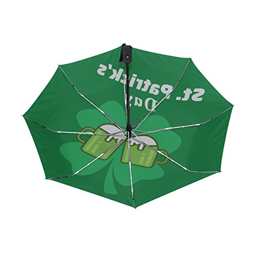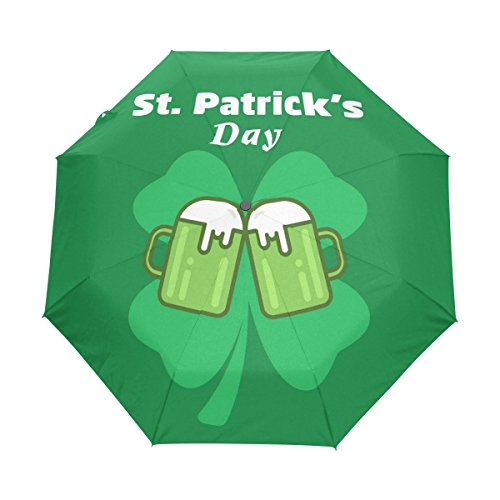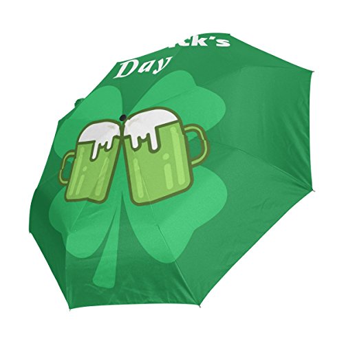 materials: made of 100% polyester pongee waterproof fabric. Weight: it is lightweight, 393g. Single-sided printing. Style: automatic open and close umbrella; foldable mini travel umbrella. Can be used on rainy and snowy day. Suitable for boys, girls, women and man. Feature: Light weight, small, portable. This Green Four Leaf Clover Happy St. Patrick'S Day Beer Glasses Irish Shamrock folding umbrella is also a perfect Christmas gift, new year gift, and back to school gift. 0