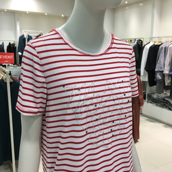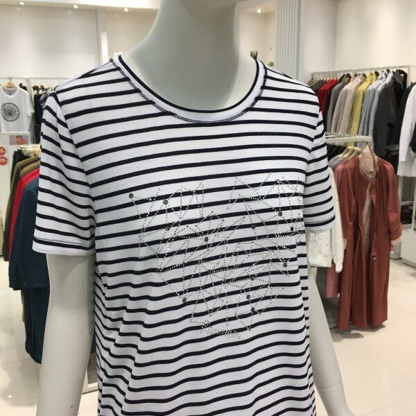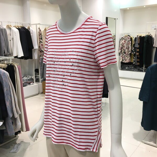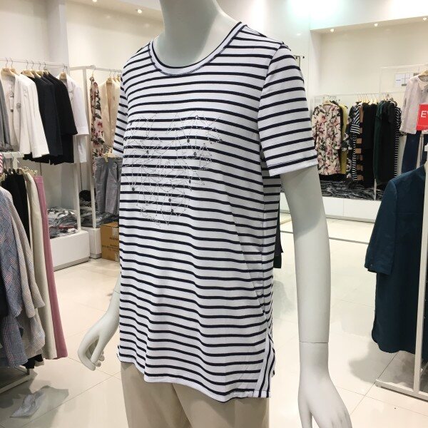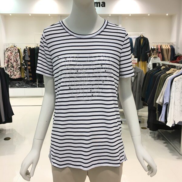 레노마레이디 핫픽스포인트스트라이프티셔츠 D2CW22TS050깔끔한 디자인에 터치감이 부드러운 져지 티셔츠입니다. 화이트 컬러를 바탕으로 깔끔하게 입기 좋은 핫픽스 포인트 티셔츠입니다. 너무 루즈하지 않고 적당한 핏으로 부해보이지않고 단정하면서도 캐쥬얼하게 입기 좋습니다. 25 1/2인치 기장의 핫픽스 포인트 스트라이프 티셔츠 입니다.
