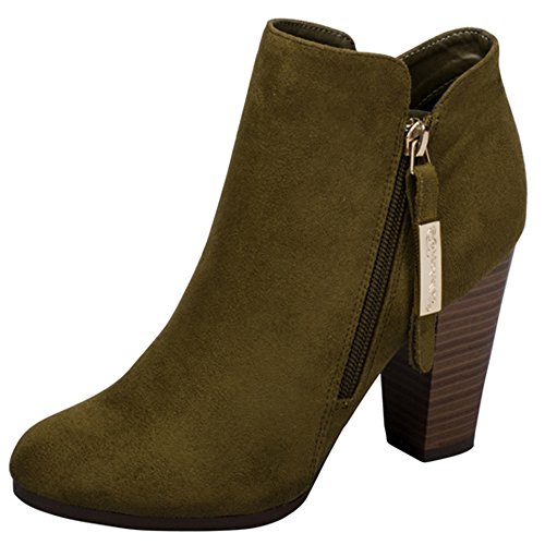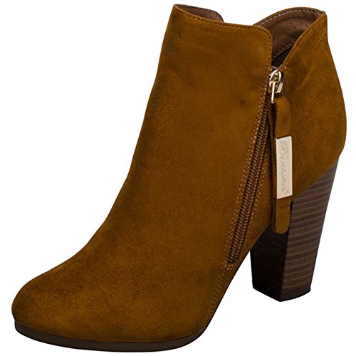 Breckelle's Women's Closed Toe Zipper Stacked Chunky Heel Bootie
