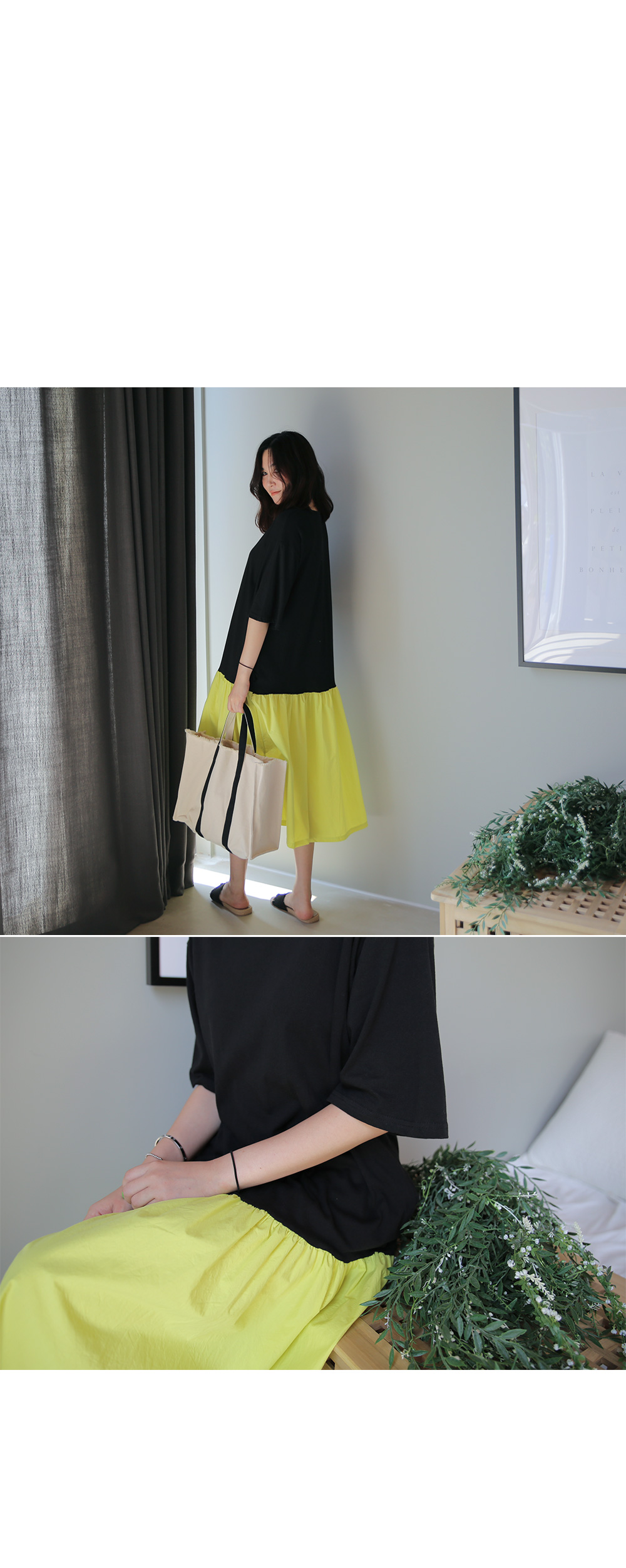 롱한 기장감의 러블리한 원피스에요