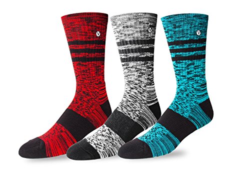 -. Binding : Apparel -. Brand : VYBE Socks -. Department : mens -. Feature : PERFECT COMBINATION OF CASUAL SOCK STYLES - Our striped and heathered cotton designs are perfect when you are looking to give off that casual vibe. Choose your favorite color combination and get your VYBE on today. / EXTREME COMFORT - Don't sacrifice comfort! Our super soft, padded sole cotton socks will keep your feet feeling good and looking great. If you're looking for a men's sock size 9-13, you can be sure these socks will fit you. Satisfaction Guaranteed. 83% Cotton 12% Polyester 4% Rubber 1% Spandex / EXPRESS YOURSELF WITH CUSTOM DESIGNS - Break out of the ordinary gold toe sock and into something colorful and new! Fancy socks for EVERY occasion. Impress the bros with your classy taste in men's casual socks. / INDIVIDUALLY PACKAGED PAIRS - Perfect for keeping your favorites and gifting some too. Each comes with an individual retail tag. / FIT FOR STYLE -VYBE socks have the capability to be worn, and stay, at mid calf if fully extended or comfortably below the calf in a natural resting casual crew socks style. -. ProductGroup : Apparel -. ProductTypeName : SOCKSHOSIERY -. Size : 9-13 -. Title : Mens 3 Pack Causal Cotton Socks – Versatile For Any Occasion By VYBE Size (9-13)