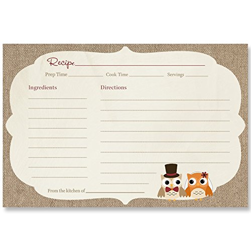 Recipe Cards, Bridal Shower, Wedding, Gift, Burlap, Owls, Autumn, Brown, Orange, Housewarming, Rustic, Double Sided, with Lines, Fall, 4 x 6, 24 Printed Recipe Cards, Look Whoos Getting Married