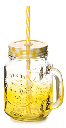 Jazzy Transparent Yellow Mason Jar with Straw