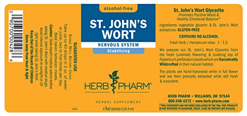 ReleaseDate : 2013-09-20 Studio : Herb Pharm Publisher : Herb Pharm Binding : Health and Beauty Product Description Herb Pharm St. John's Wort extract supports the body's natural mechanisms to promote positive mood and emotional balance.* Herb Pharm prepares St. John's Wort from fresh (never dried) flowering budding tops of Hypericum perforatum plants which are Sustainably Wildcrafted in their natural wild habitat. The plants are hand-harvested while in full flower and are then promptly extracted while still fresh succulent. Seek expert medical advice before taking St. John's Wort with medical drugs. Avoid intense exposure to sunlight or UV light while taking St. John's Wort. St. John’s Wort is bitter, slightly sour and aromatic with an astringent mouthfeel. It may be added to water or other liquid for taste and is easily absorbed into the bloodstream. Herb Pharm never uses synthetic solvents. The company's farm is Certified Organic, Bee Friendly, and Salmon Safe. Herb Pharm is the #1 selling liquid herbal extract brand in US Natural Food (SPINS). Herb Pharm is a company of herbalists, scientists, and farmers in GMO-free Josephine County, OR. There, they have been cultivating herbs with care, precision, and respect for nature since 1979. 0