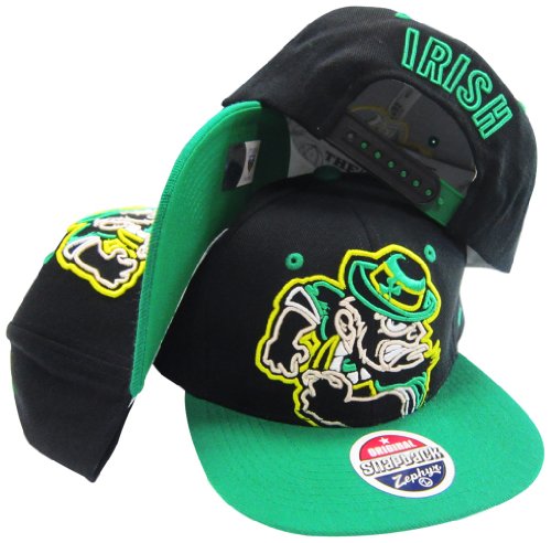 NOTRE DAME FIGHTIN' IRISH BLACK/GREEN PLASTIC ADJUSTABLE SNAPBACK HAT/CAP