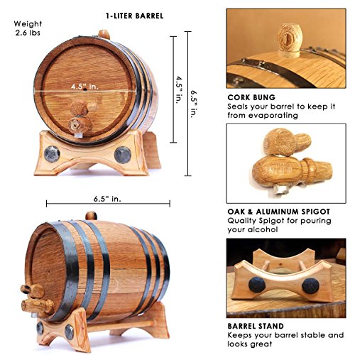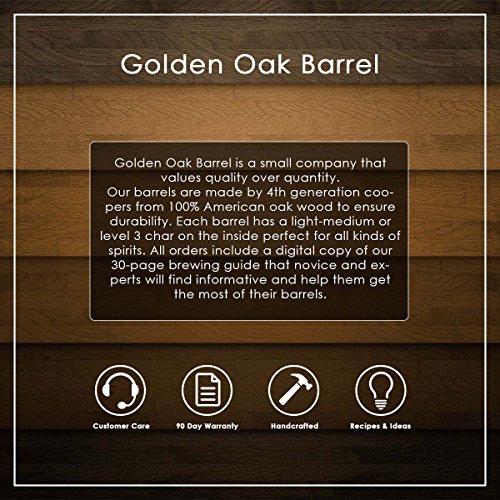 Studio : Golden Oak Barrel Publisher : Golden Oak Barrel Product Description FAQWhat happens if my barrel won't seal?It can take up to 2 days for the wood to swell and the barrel to seal fully. Make sure you let it swell fully as this prevents leaks and also minimizes the amount of alcohol that is absorbed by your wood. If it still doesn't seal, send us a message, we'll work on making it right by you.How do I use the barrel and essences?Refer to the full guide online to see how essences can be incorporated with your favorite alcohols.What if my stand breaks or a piece gets lost in transit?Send us a message through amazon and we will get a replacement out to you the next day via priority mail. We truly do our best to make sure everyone gets a barrel that preforms well and last for ages.Which size should I buy?This depends on how much alcohol your looking to add. We strongly recommend filling the barrel to at least 80% in volume to help keep it damp on the inside. Our most popular ones are 2 Liter and 3 Liter Barrels followed by 1 and 5 Liters with the biggest 10 20 Liters being for the true distiller.What is the litle bag of white wax for?After repeated uses a barrel can develop small pin hole leaks. Instead of discarding it or letting your alcohol leak, we include this and a short video listed on our guide showing you how to stop any little leaks that develop.What alcohol can I use this for?Whiskey, tequila, rum, wine, beer, bourbon and other alcohols. Also, hot sauce, vinegar and other non-alcoholics.Why buy from us?Once the oak wood is dry, we cut shape it wood for each barrel and checked for an air tight seal. If there is an issue we remedy it immediately. Once it passes quality control, it's wrapped and sent out to amazon that same week. Form the time the wood is cut to the time it is in our customers hands, it is usually less than 4 weeks which helps ensure the best quality products. 0