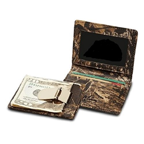 Product Description Exterior money clip holds all your bills. Interior clear-view window for driver's license. Four additional pockets for credit cards, etc. Mossy Oak Break Up 0
