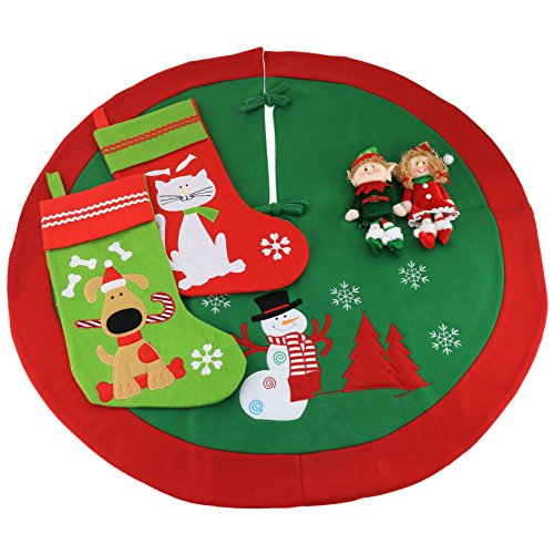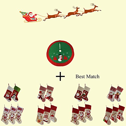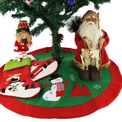 Wewill 35" Exquisite Thick Christmas Tree Skirt with Red Border Tree Decoration Holiday Ornament(Style 1)