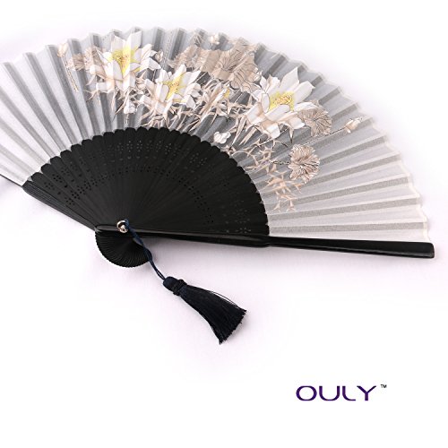 Ouly Silk fan, Chinese fan, Chinese style,fan box protection,Japan fan Multiple Colors (Light gray)