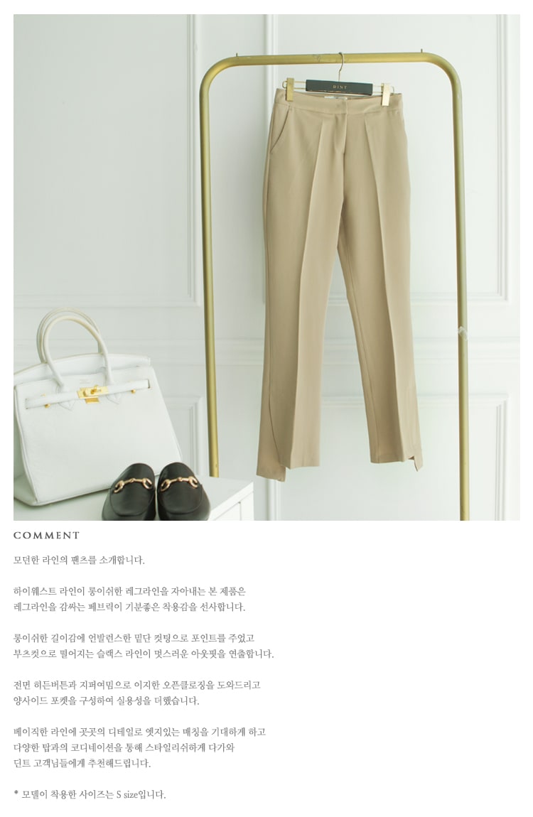 P1919 하이 언발 슬릿 슬랙스 팬츠 Black