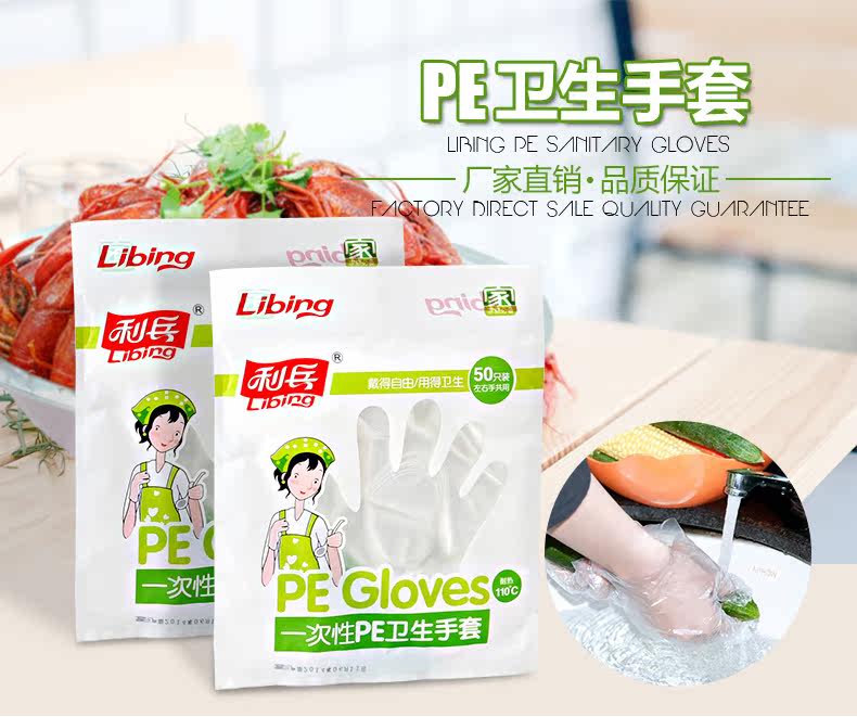 加厚一次性手套 餐饮美发吃龙虾手套 PE食品级薄膜透明手套