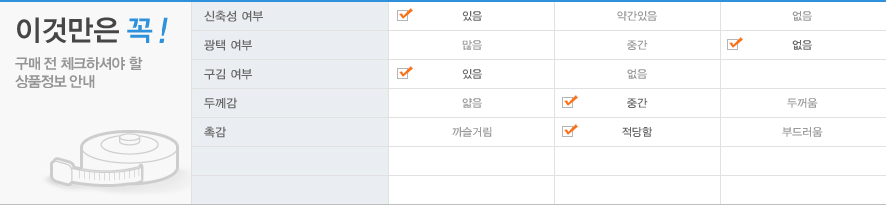 | ※ 모니터 해상도, 발기, 컴퓨터 사양 , 이미지에 따라 약간의 색상 차이가 있을 수 있습니다. ※ 품질경영 촉진법에 의한 품질 표시를 꼭 참조하시어 세탁하십시오 |
