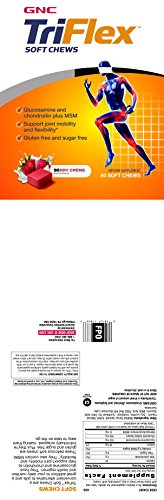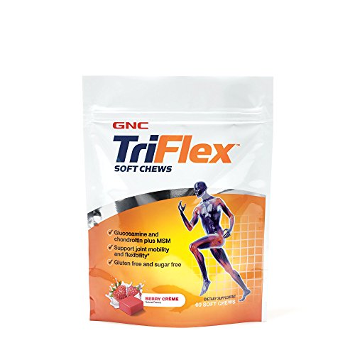 -. Binding : Health and Beauty -. Brand : GNC -. EAN : 0048107178444 -. Feature : Glucosamine And Chondroitin Plus Msm / Support Joint Mobility And Flexibility / Gluten Free And Sugar Free / Soft Chews / Tr.i.f.l.exTM Soft Chews Are A Convenient Alternative To Pills And A Great Addition To Your Daily Nutrition And Health Regimen. They Have Glucosamine And Chondroitin To Help Support Joint Mobility And Flexibility.They Also Contain Msm. -. Label : GNC -. Manufacturer : GNC -. MPN : 534867 -. PackageQuantity : 1 -. PartNumber : 534867 -. ProductGroup : Health and Beauty -. ProductTypeName : HEALTH_PERSONAL_CARE -. Publisher : GNC -. Size : 60 servings -. Studio : GNC -. Title : GNC Tr.i.f.l.ex Soft Chews - Berry Creme -. UPC : 048107178444