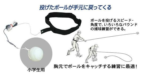 投げたボールが手元に戻ってきますので、投げるスピードと角度によって、色々なバウンドの捕球練習ができます。 |