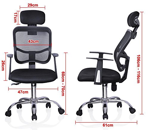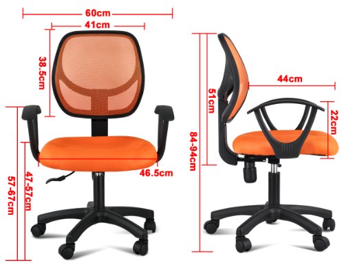 -. Feature : 5pcs 360-degree swiveling castors for easy movement / Easy to assemble and maintain, super reliable and durable / Fully adjustable height(total height adjustable from 84cm to 94cm ) / Material: metal construction, mesh fabric / Seat Size:18.3" x 17.3" x 2.4" (L&W&T)