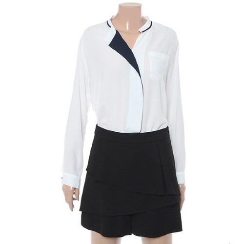 브이넥 배색블라우스,구김없이 이쁘게 편하게 잘입어집니다