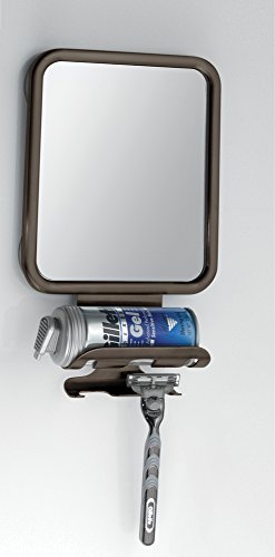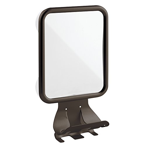 mDesign Shower Shaving Suction Mirror with Shaving Cream and Razor Holder for Bathroom - Bronze
