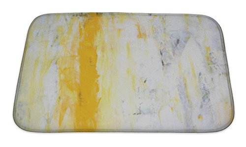 Gear New No Slip Microfiber Memory Foam Grey & Yellow Abstract Art Painting Bath Rug Mat, 24" X 17"