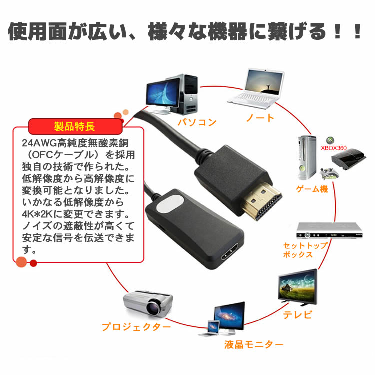 ■OFCケーブル採用 線材に純度99.996%OFC(無酸素銅)を採用し、画質の劣化を抑制します。