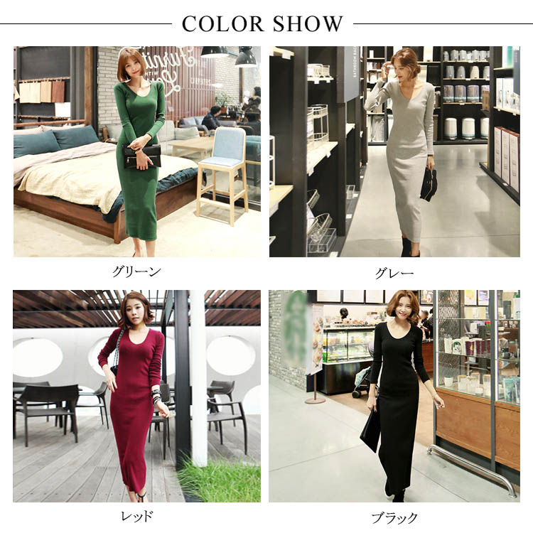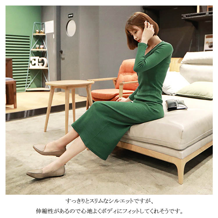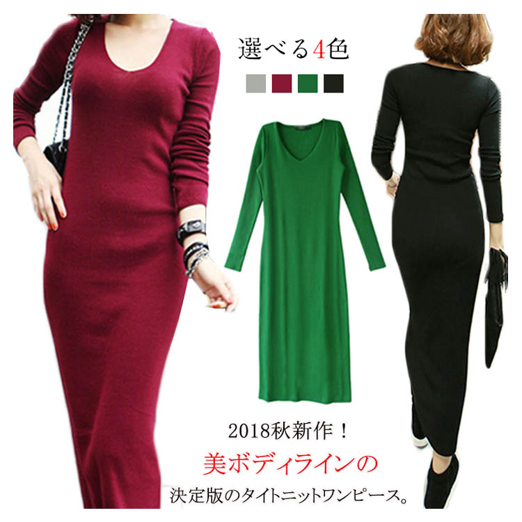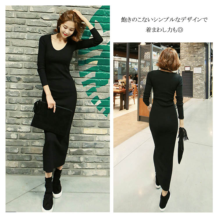 | 2018秋新作!美ボディラインの決定版のタイトニットワンピース。少し広めのラウンドネックはデコルテラインをキレイに見せてくれます。すっきりとスリムなシルエットですが、伸縮性があるので心地よくボディにフィットしてくれそうです。飽きのこないシンプルなデザインで着まわし力も◎このままでもカーディガンやコートと合わせてもオシャレを楽しめるのでぜひおススメです!! | |