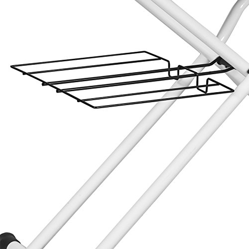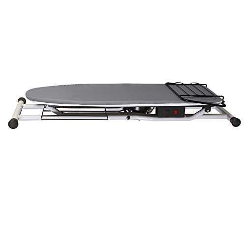 Built-in heating element; end shelf for holding an iron; handy lower shelf
