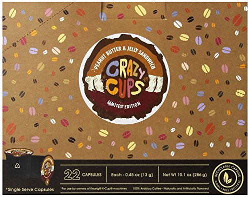 Crazy Cups Flavored Coffee, for the Keurig K Cups 2.0 Brewers, Peanut Butter and Jelly Sandwich, 22 Count