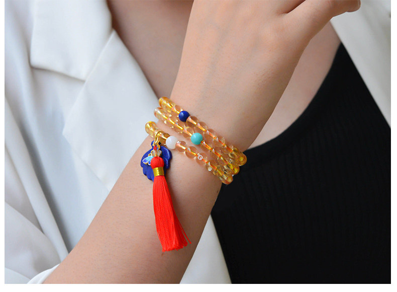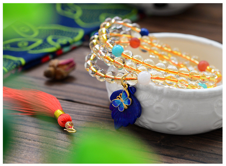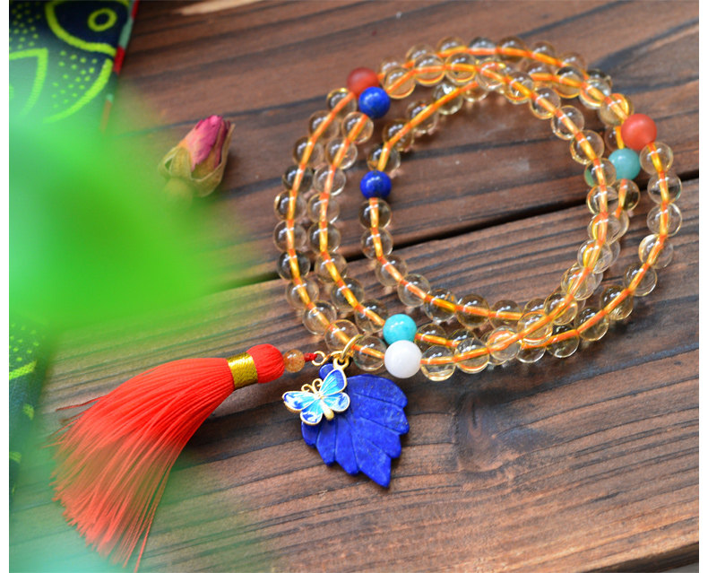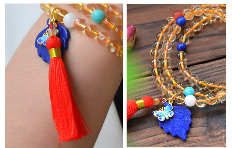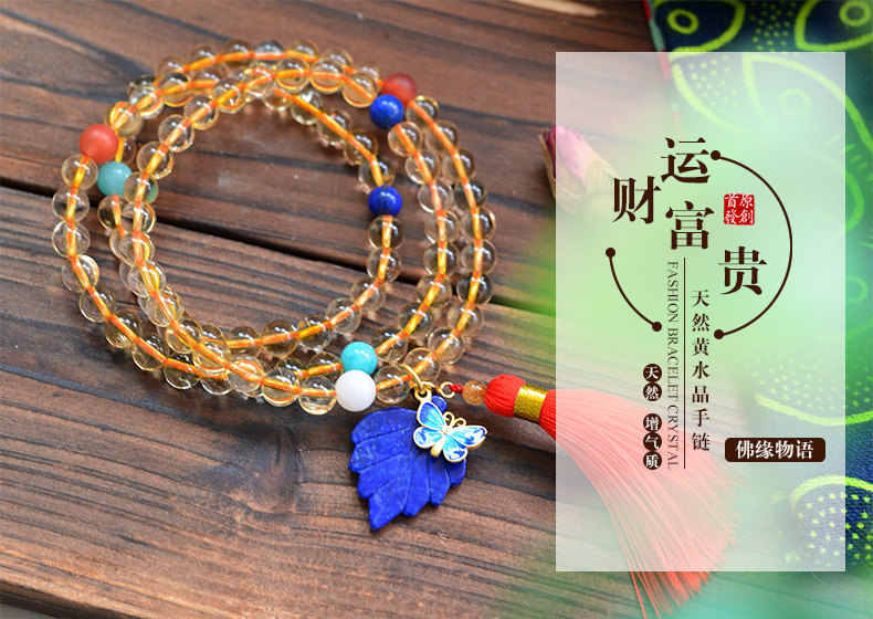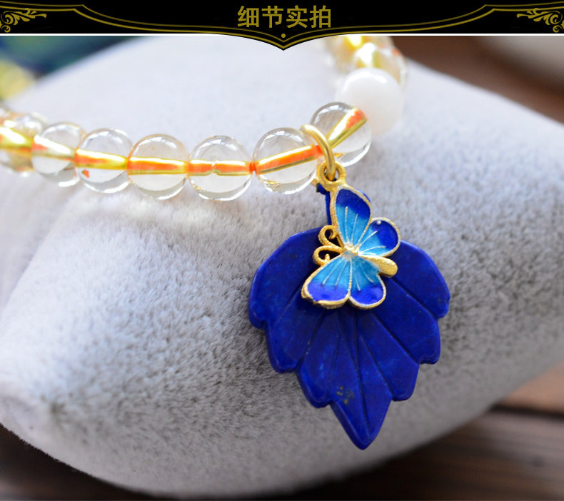 开光天然黄水晶青金石手链富贵蝴蝶手串青金石女款生日礼物