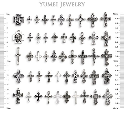50Pcs Antique Silver Cross Charms for DIY Necklace Pendant Making