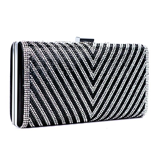 The glamorous evening party clutch features allover sparkling crystals on the front of this chic shaped clutch? magnetic closure and detachable chains which offers versatile carrying options as handbag,clutch, a shoulder bag or a cross-body bag