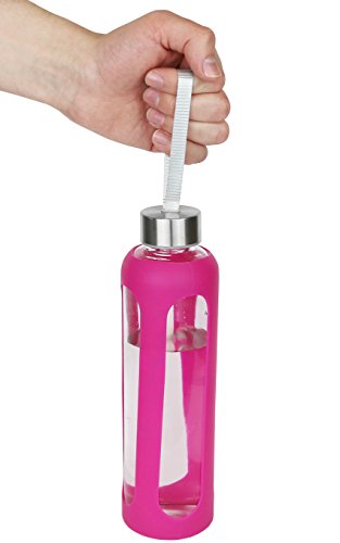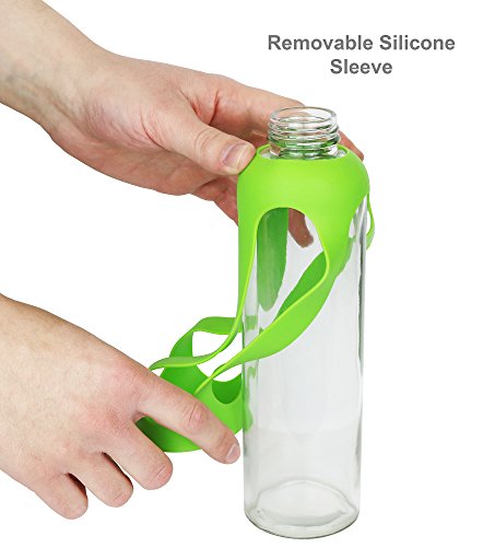 -. Title : Estilo Glass Water Bottles 20 Oz, Stainless Steel Cap with Protective Silicone Sleeve - Set of 4 (Green, Black, Blue, Pink)