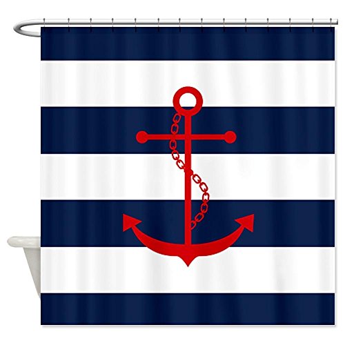 YEHO Art Painting Red Anchor On Blue Stripes Fabric Shower Curtain Super Soft -Bath Curtain Great For Friends-Birthday Gift 72X72 inches