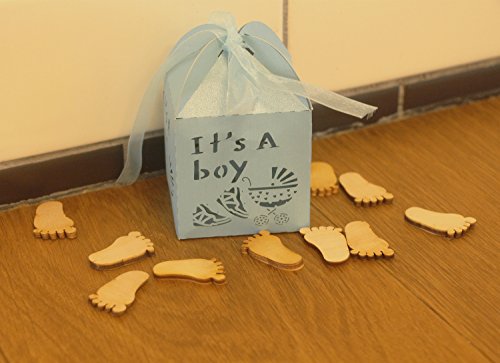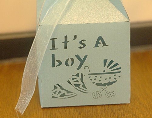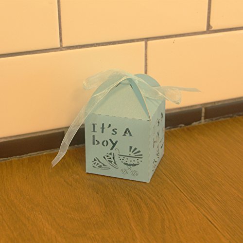 YOZATIA 50pcs Laser Cut Baby Carriage Favor Box Bomboniere Gift Candy Boxes Baby Shower Party Decoration,2.2''x2.2''x2.2''?blue?
