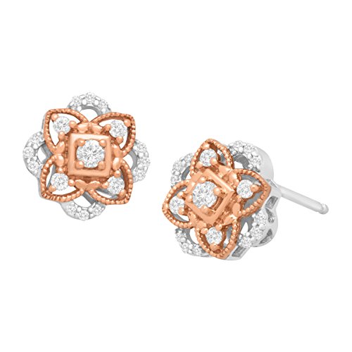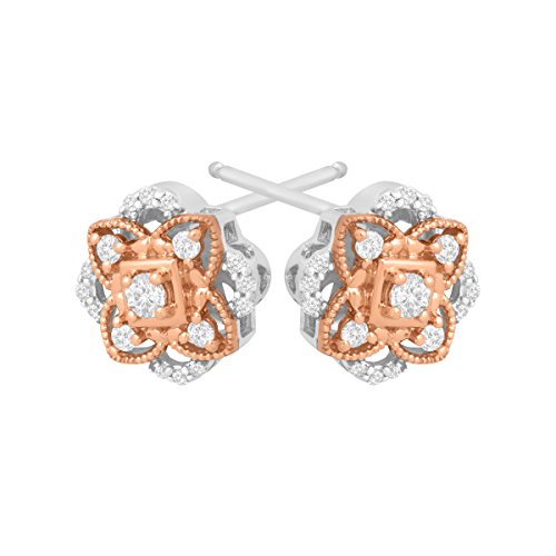 -. Title : 1/4 ct Diamond Rosette Stud Earrings in Sterling Silver & 14K Rose Gold