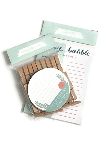 Baby Shower Games - Baby Babble Word Scramble and Predictions Advice Cards and Clothespins & Twine