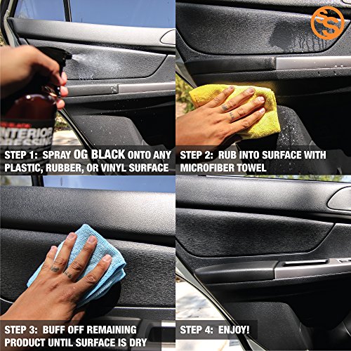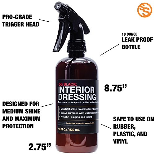 Shine Society's OG Black Interior Dressing, Restores Interior Trim and Tires To A Natural Looking Finish And Protects Surfaces From Fading with MICROFIBER TOWEL INCLUDED (18 oz.)